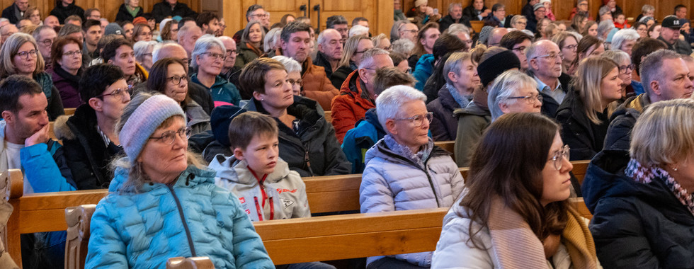 Natalie Hauser führte professionell durch den Abend, während Melanie Hösli die Musizierenden gekonnt führte. Dies war an diesem Abend teilweise besonders herausfordernd. Beim Stück "Auld Land Syne" spielte David Kobelt am anderen Ende der Kirche an der Orgel. Die verzögerte Akustik machte das Zusammenspiel zur Herausforderung. Doch auch dies meisterte die HMN unter der Leitung der Dirigentin souverän und bot dem Publikum eine gewaltige Klangkulisse.